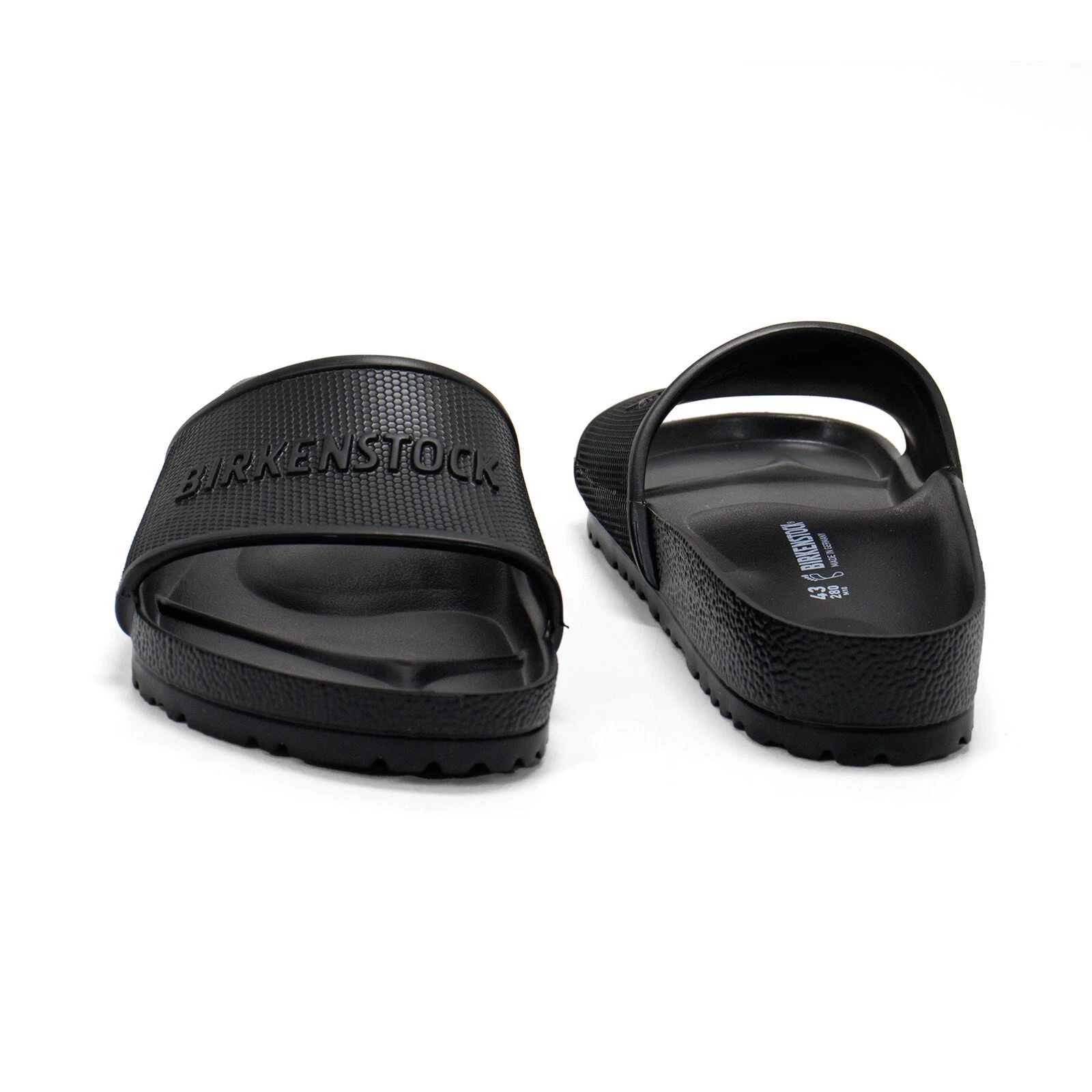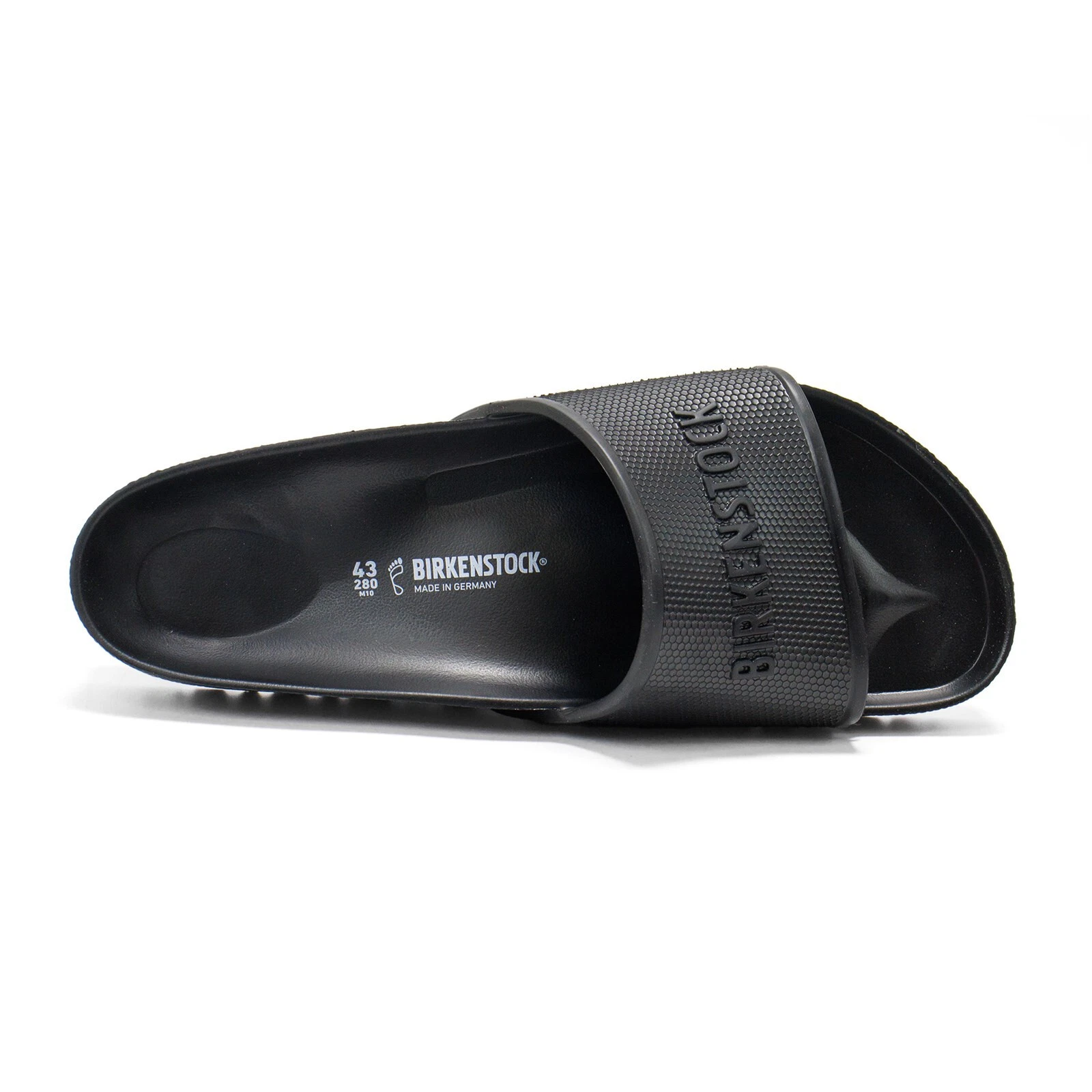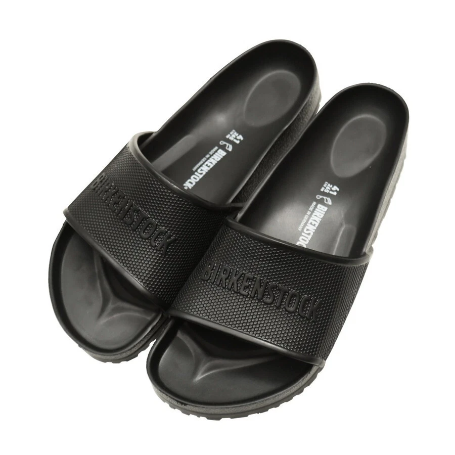 The BIRKENSTOCK Barbados is a sporty mule with a hexagon pattern and logo lettering. It?s perfect for anyone who is looking in particular for function and comfort. Modeled on the cork sandal, this sandal is made from especially light and flexible EVA. This high-quality, odor-neutral synthetic material which has been tested for harmful substances is shock-absorbent, waterproof, and skin-friendly. It?s therefore perfect for wearing at the beach, in the garden, or in wellness and spa areas.