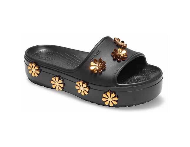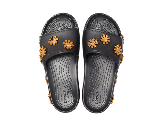 Silver, gold and platinum are as timelessly desirable as they are fashionably relevant. The Crocs Statement Collection of Metallic Blooms expresses our affinity for all things shiny and precious with metallic flower charms and studded metallic embellishments. These special-edition Crocband? slides will put the right amount of bling in your spring, summer and beyond.