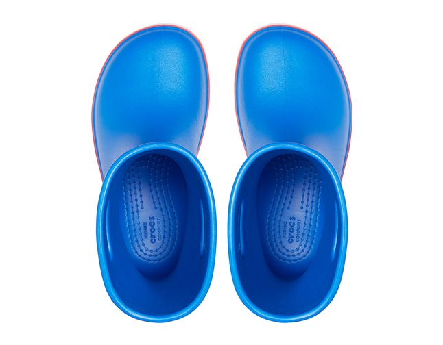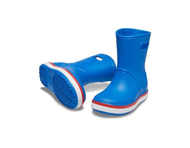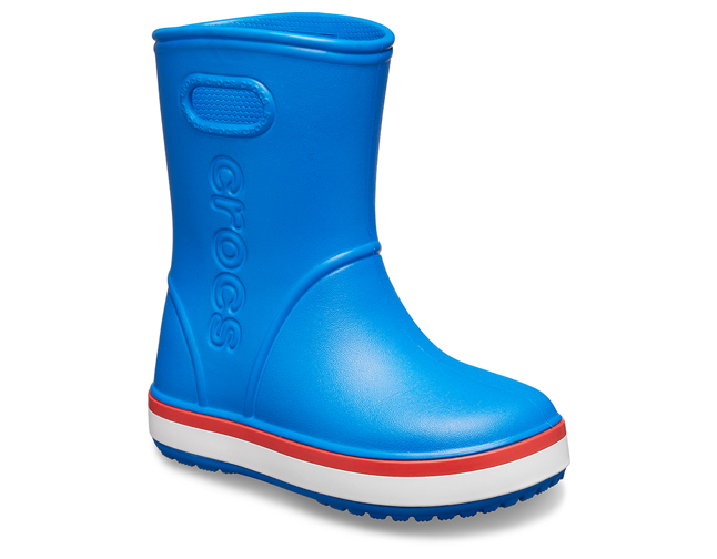 Make A Splash All the lightweight color and sporty Crocband? style kids love is now available in a fun and functional rain boot. Oversized openings at the top make them easy for kids to put on and take off by themselves, and a fully molded Croslite? construction means they are easy to clean and impervious to water and other elements. Reflective Crocs logos on the heels increase visibility for safer playtime.