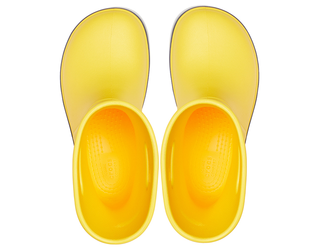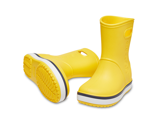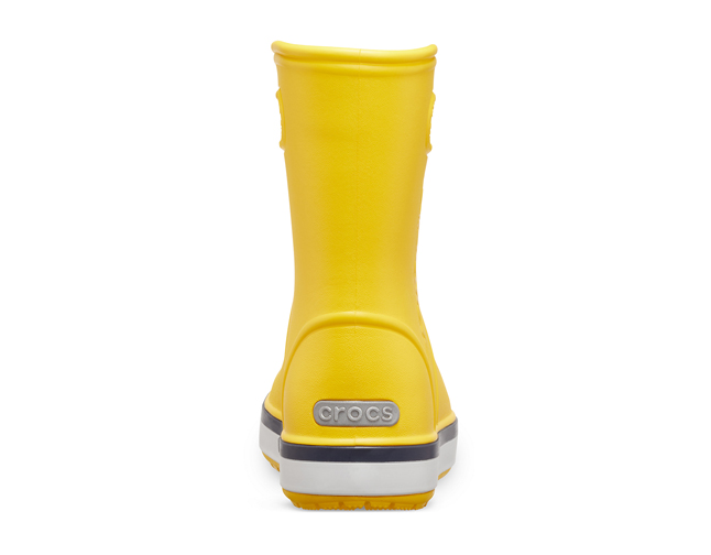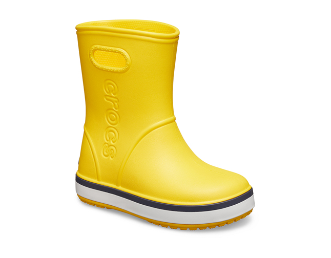 Make A Splash All the lightweight color and sporty Crocband? style kids love is now available in a fun and functional rain boot. Oversized openings at the top make them easy for kids to put on and take off by themselves, and a fully molded Croslite? construction means they are easy to clean and impervious to water and other elements. Reflective Crocs logos on the heels increase visibility for safer playtime.