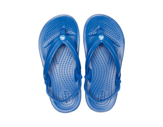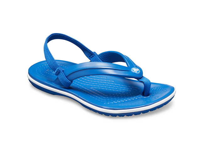 Slip your little one’s feet into the comfortable, retro style of these Crocband? Strap Flips. They feature a lightweight, durable Croslite? foam construction, a contoured footbed, and sporty stripes for a simple style kids will love. The added heel strap provides a more secure fit than our regular flips.