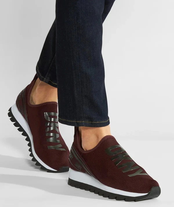 DKNY Womens Abbi Fabric Low Top Slip On Fashion Sneaker Burgundy