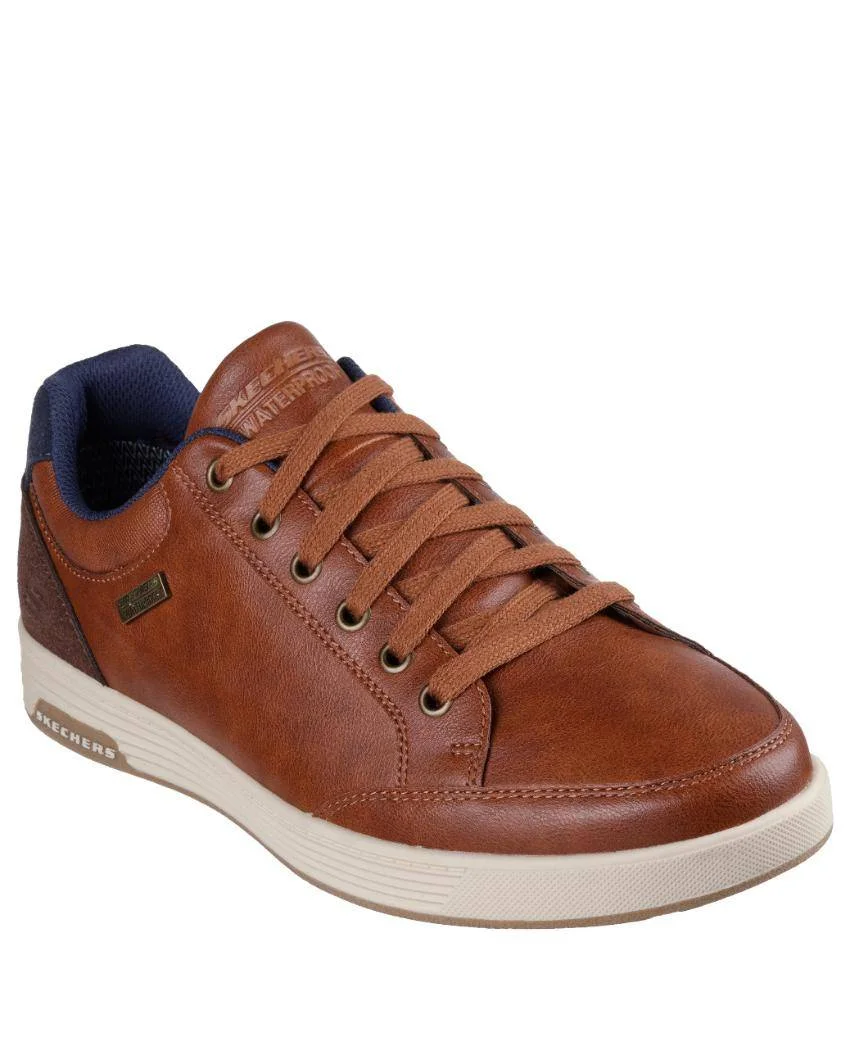 Stay dry on rainy days in business casual style, wearing Skechers Cavell – Sparkman. This waterproof lace-up features a smooth faux leather upper with heel trim and a Skechers Air-Cooled Memory Foam? cushioned comfort insole.