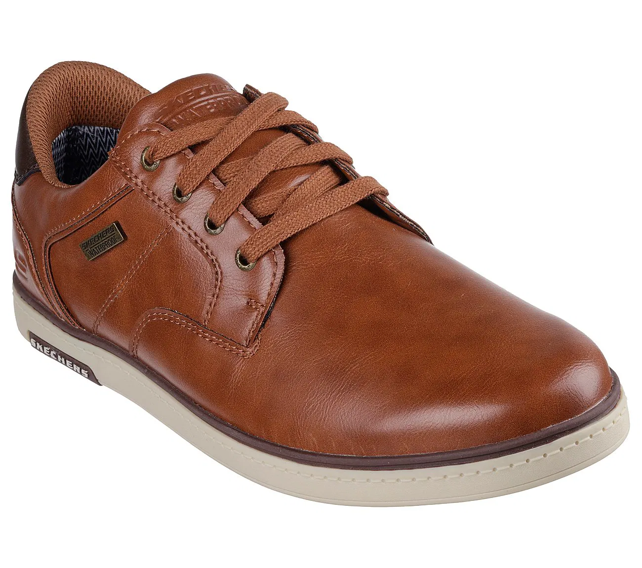 Elevate your wardrobe and look sharp with the comfortably versatile Skechers Men’s Haley Cup Sole- Suit Sneaker. This lace-up features a synthetic duraleather upper with fixed laces and a cushioned Skechers Air-Cooled Memory Foam? comfort insole.