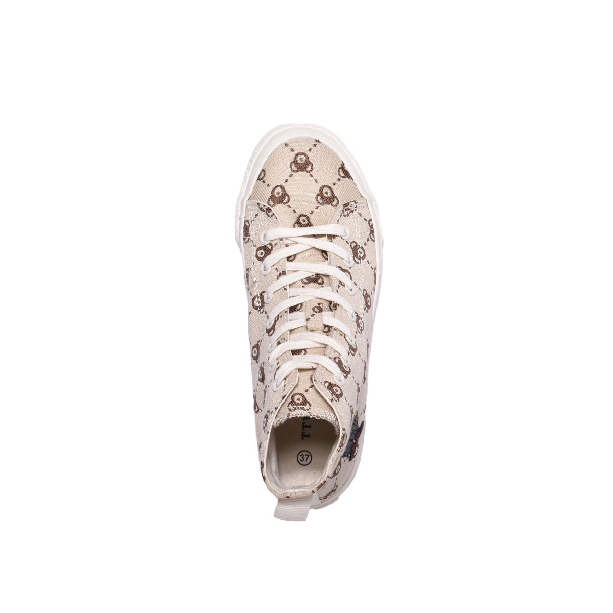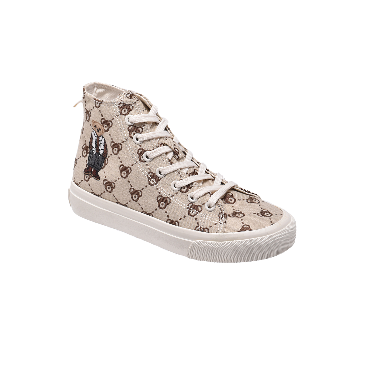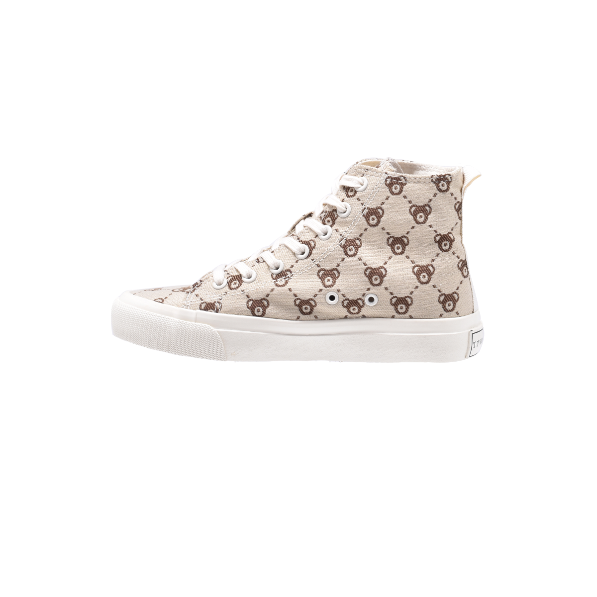 TTWN Bear High-Top Apricot Beige Canvas Big-Eared Bear Pattern Shoes