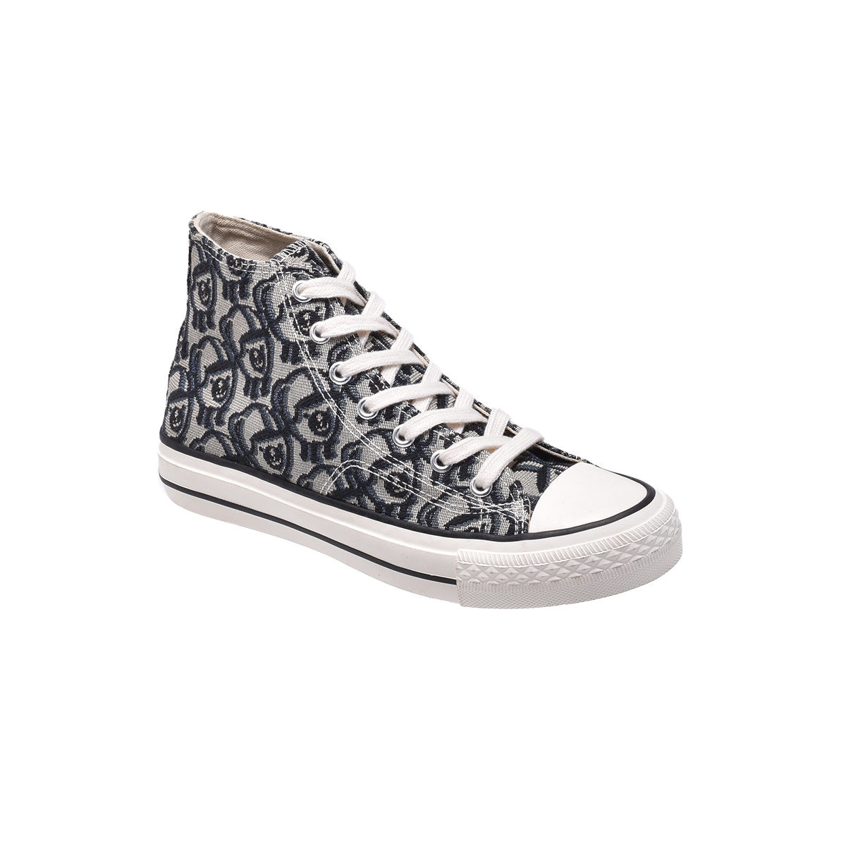 TTWN Bear High-Top Gray Bear Head Pattern Canvas Shoes