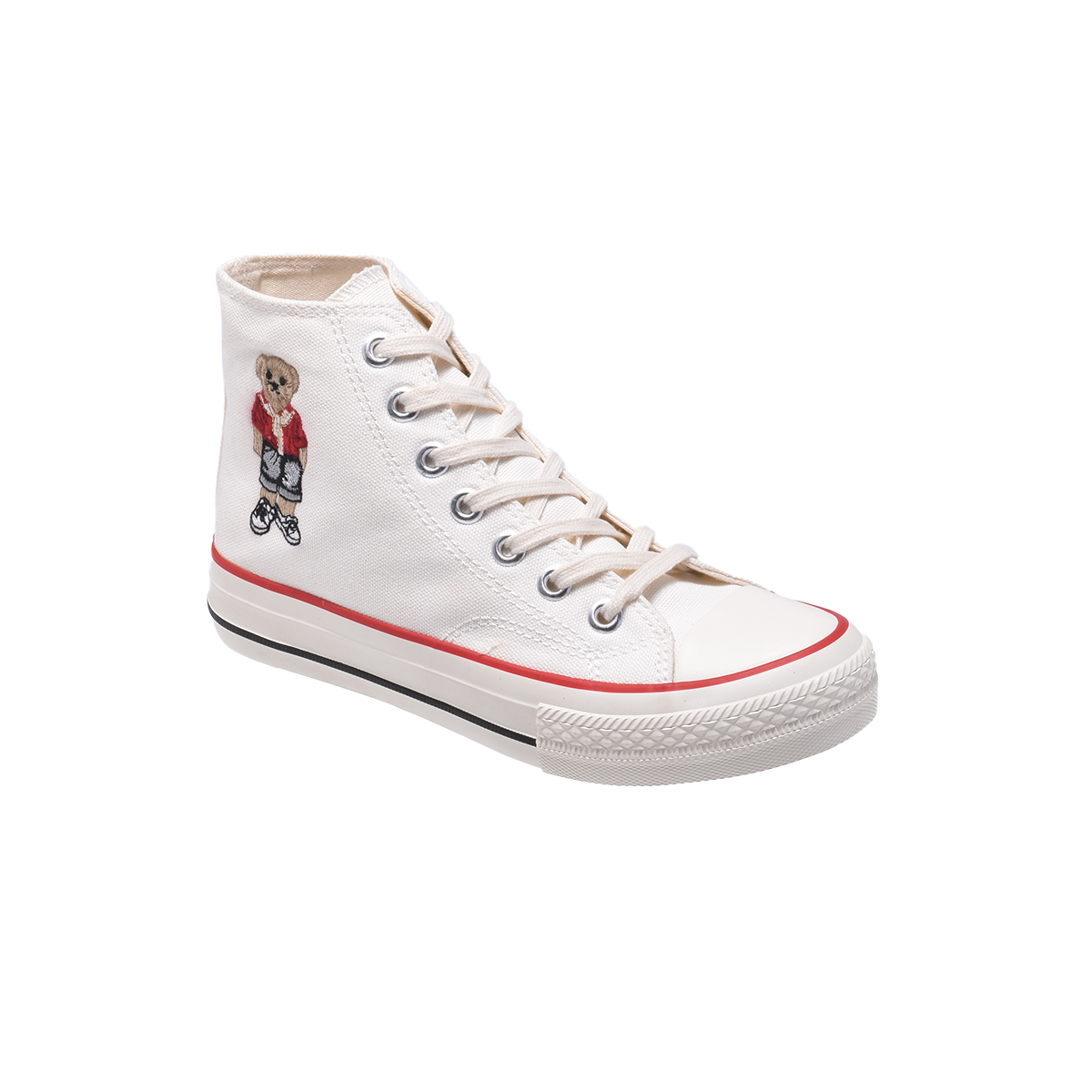 TTWN Bear High-Top White Canvas Embroidered Bear Shoes