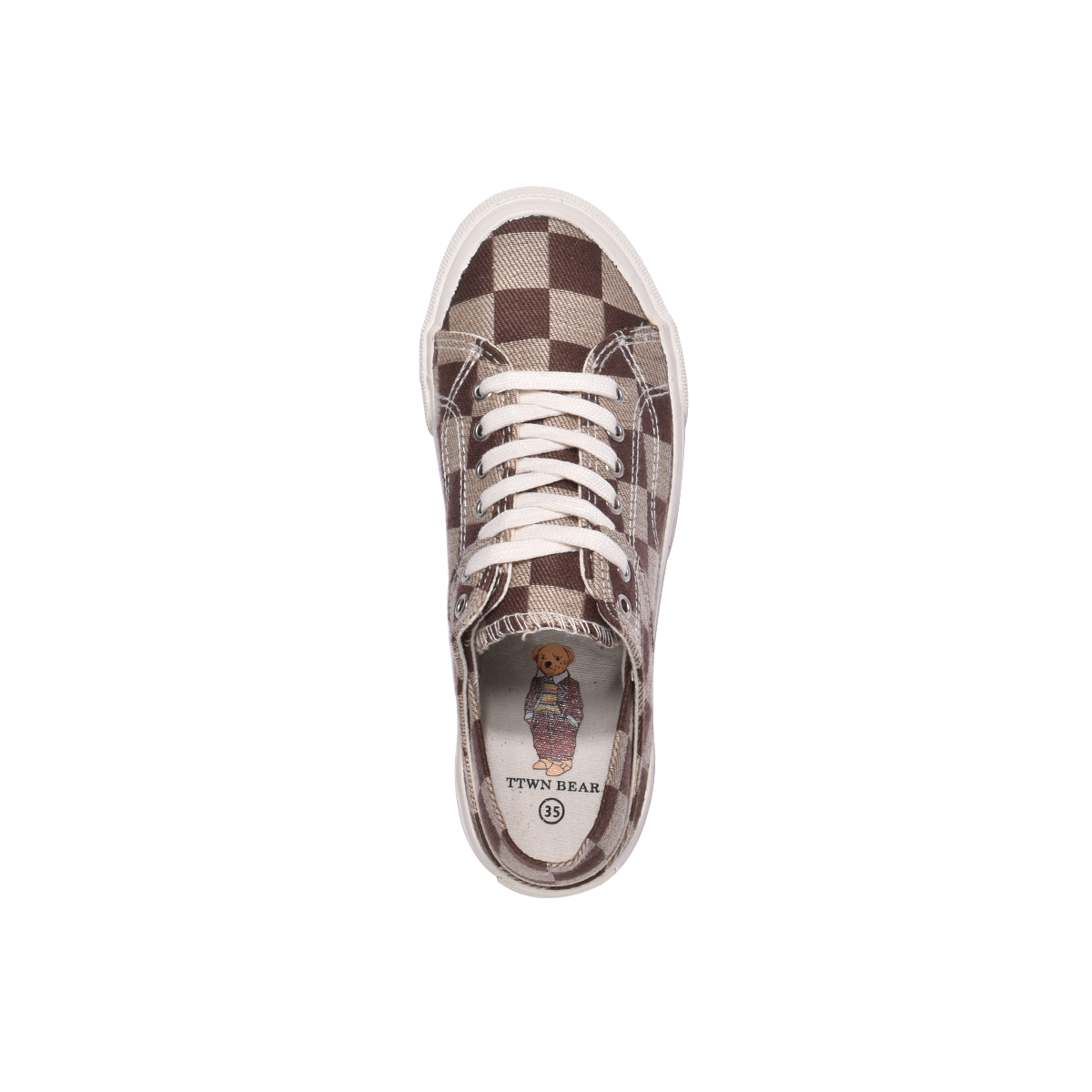 TTWN Bear Low-Top Brown Checkered Canvas Shoes