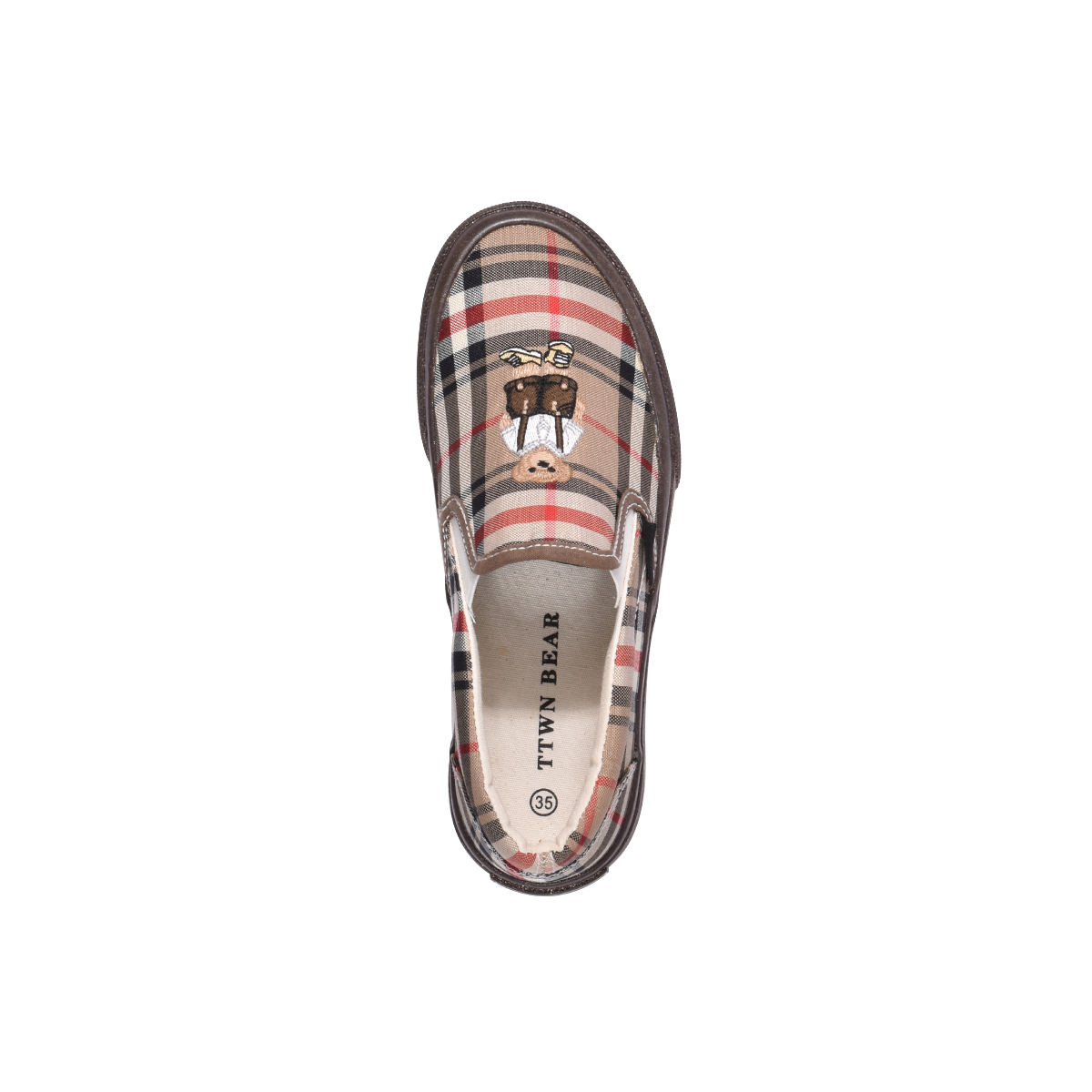 TTWN Bear Slip-On Khaki Checkered Shoes